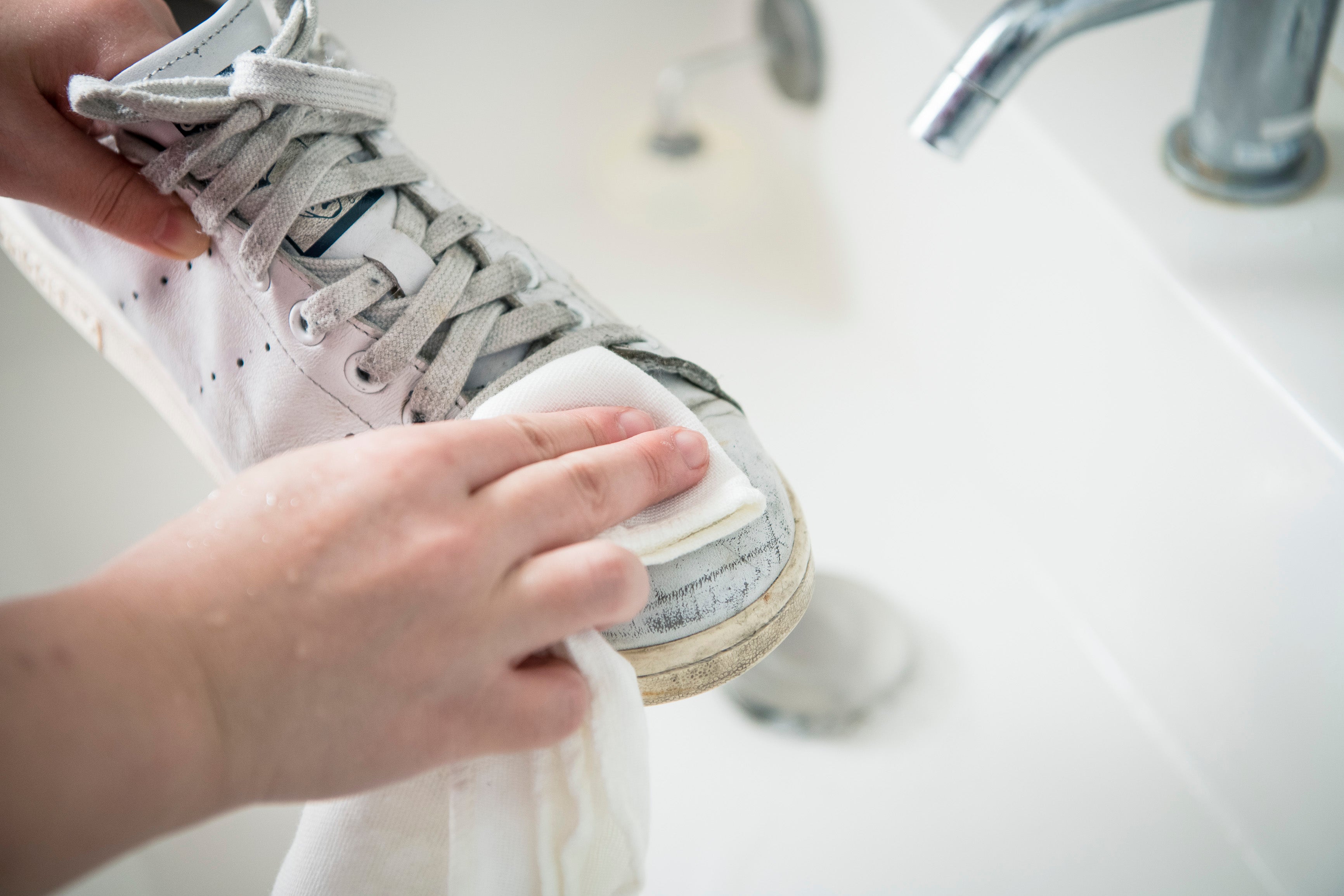 Médeteをスポンジに取り、泡立てた状態で汚れの気になる箇所に優しく馴染ませたらあとは布で拭き取るだけ。